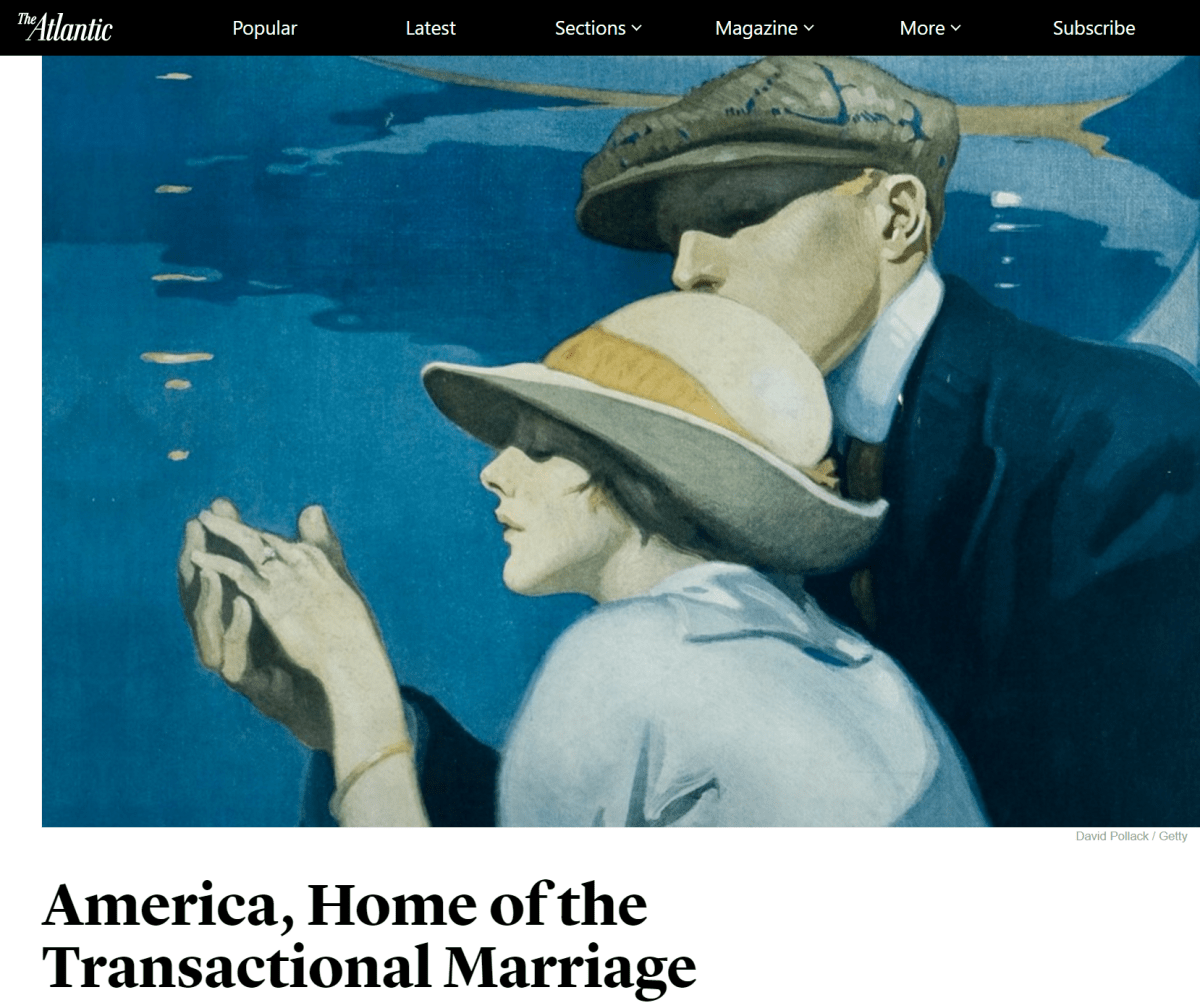 By the way, on Monday I’ll be doing a live, on-air interview on KERA, the NPR station in Dallas.  I’ll be on THINK, the station’s daily talk show, talking about my piece for The Atlantic about transactional marriages. The interview will be from 1-2 p.m. ET (12-1 p.m. CT), and it looks like you can listen to it online at keranews.org. Thanks for all your support!