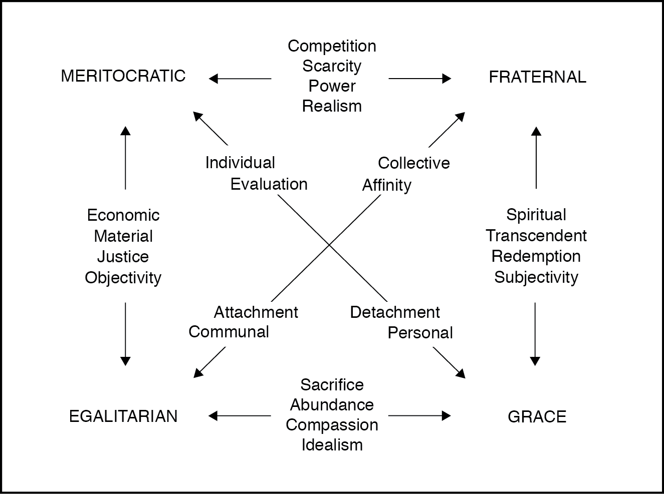 Four moralities: meritocracy, egalitarianism, fraternalism, and grace